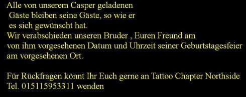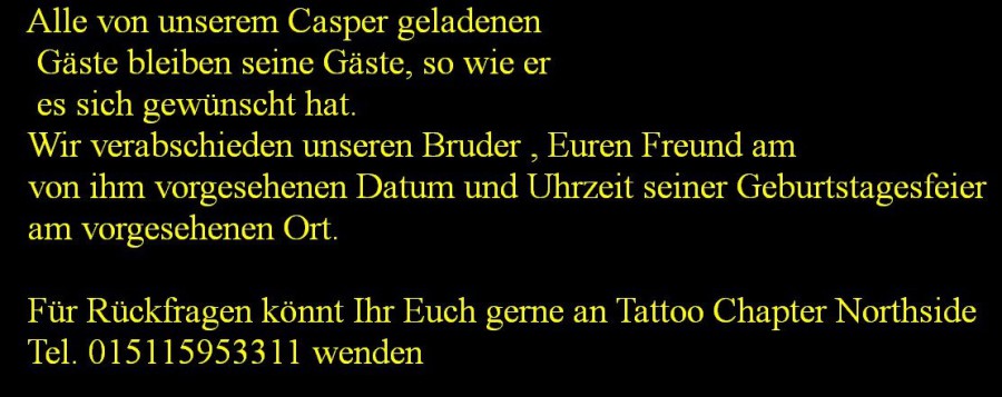 Wir trauern um unseren am 27.12. verstorbenen Bruder Casper - wir sehen uns auf der anderen Seite.