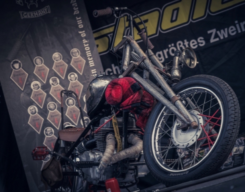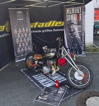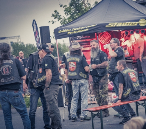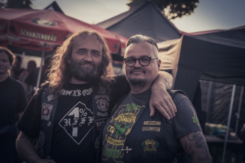 Das Memory Pavillon zur Erinnerung an die verstorbenen Brüder mit dem „Zombike“ hatte seinen eigenen Platz gegenüber den Hamburger – und Bratwurststationen, der Bonkasse und dem Schnaps – und Cocktailwagen. Gegen 14.00 Uhr am Samstag trafen dann die ersten Gäste ein. Der Platz füllte sich zusehends und war gegen 18.00 Uhr proppenvoll. Es waren große und kleine Clubs aus der Region und ganz Deutschland ebenso vertreten wie einige Clubs aus Österreich, Rumänien und Südtirol.