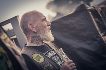 Für Merchandising, Patches und das bedrucken von T-Shirts hatte der „Bikersticker Alex“ einen eigenen Stand aufgebaut.