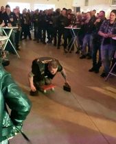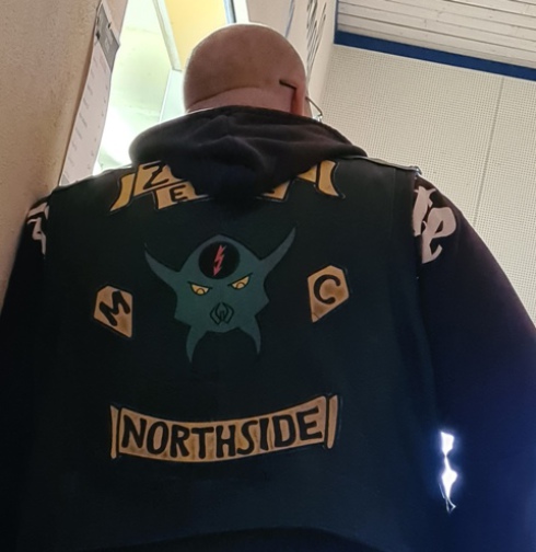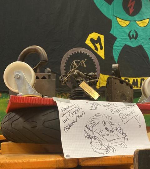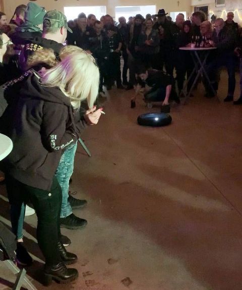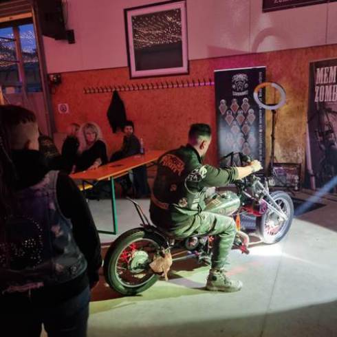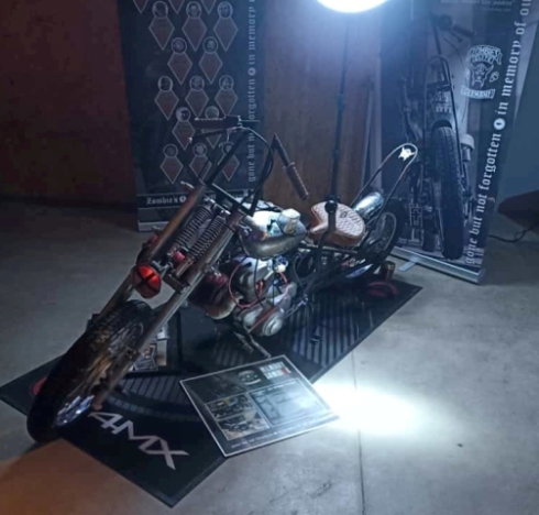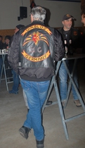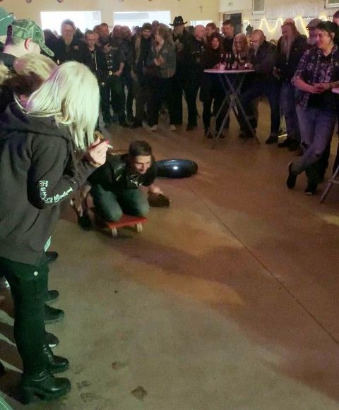 gesorgt hatte. Auch dieses Jahr wurde wieder das Zombike zum Gedenken an die verstorbenen Brüder vorgefahren und ausgestellt. Beim Bügeleisen-Rennen konnte Prospekt Marco vom Chapter Northside mit