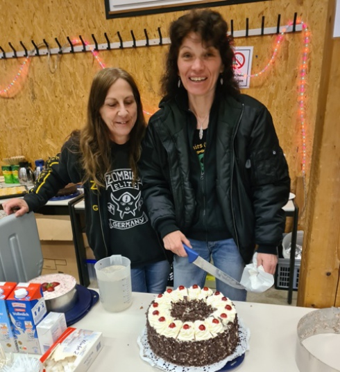 Im Anschluss ging die Feier ungetrübt weiter bis in die frühen Morgenstunden. Auch kulinarisch kamen die Gäste rund um die Uhr sicher auf ihre Kosten. Es gab Spießbraten, Bratwürste und belegte Stangen. Die Kuchen- und Tortentheke konnte sich wieder sehen lassen – so viel Auswahl gibt es nicht mal in einer guten Konditorei. Ein herzlicher Dank an die Mädels, die hier gebacken haben und zauberten, besonders an Babsy, die die meisten Torten beisteuerte.