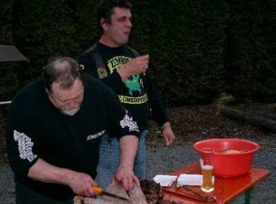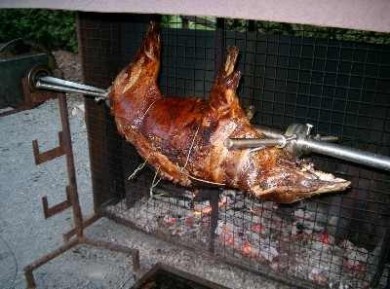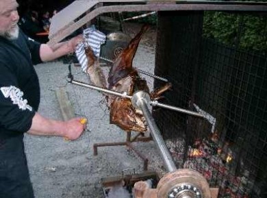Ab 18.00 Uhr gab es zur Feier des Tages zwei Wildschweine vom offenen Grill, natürlich gratis, so konnte eine kräftige Grundlage für die flüssigen Nahrungsanteile gelegt werden und es wurde feucht und lang.