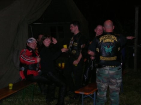 Für die hungrigen Biker gab es genug Fleisch vom Grill und gegen den Durst reichlich Bier, oder harte Sachen. Wer wollte, konnte sein Zelt aufbauen und so die kurze Zeit zwischen Partyende und