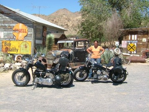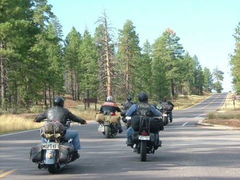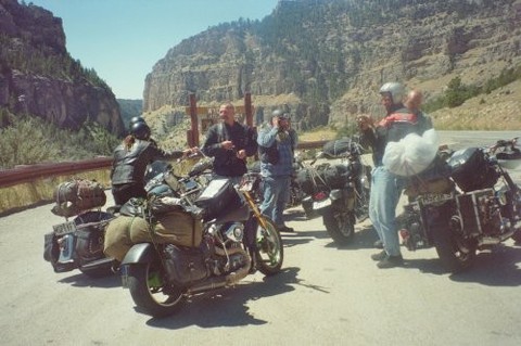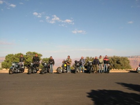 Unsere Tour führte uns durch Colorado, Wyoming, South Dakota, Utah, Arizona, Nevada und Californien Nachdem wir in Denver (Zielflughafen) unsere Motorräder abgeholt hatten, fuhren wir durch Wyoming nach South Dakota, mit dem Ziel Sturgis. Dort trafen wir uns mit Morris, dem Schongauer Presi der Zombies und seiner Lady Jutta. Morris sticht schon seit Jahren in Sturgis und kann mittlererweile im eigenen Studio seine Stamm- und Laufkundschaft tätowieren. Bei den Amis waren wir schnell die Crazy Germans mit Ihren fahrenden Museen. Nachdem wir ausgiebig Sturgis erlebt hatten (Main Street, Knuckle Saloon usw.), fuhren wir am nächsten Tag durch die Black Hills, vorbei am Crazy Horse, durch den Needles Paß zum Mount Rushmore und wieder zurück zum Campground "No Name City", um abends mit Morris zu feiern. Am nächsten Morgen packten wir die Mopeds für die Weiterreise in Richtung Rocky Mountains. Dort überquerten wir den Powder River Paß mit 9666 Fuß (3170 Meter) und anschließend den South Paß. Nachdem wir Salt Lake City hinter uns gelassen hatten, fuhren wir vom Bryce Canyon über Lake Powell zum Grand Canyon. Danach ging es nach Nordarizona. Durch gigantische Landschaften und Kurven ohne Ende führte uns der Weg von Flagstaff nach Cottonwood um anschließend die alte, orginalbelassene Route 66 in Richtung Kingmann zu fahren. Von hier aus starteten wir in sengender Hitze, noch immer ohne Helm, in Richtung Nevada. Kurz nachdem wir den Hooverdamm überquert hatten, sahen wir schon die Skyline von Las Vegas, unser nächstes Ziel. Nach einer langen Nacht in der Spielerhölle starteten wir schon sehr früh, um die heiße Mojave Wüste in Richtung Californien hinter uns zu lassen. Wir fuhren vorbei an Barstow und Bakerfield um bis zum Abend noch in die Nähe des Sequoia Park mit seinen Mammutbäumen zu kommen. Anschließend fuhren wir in Richtung Westküste, mit einem Abstecher nach Hollister, um den Highway Nr. 1 von San Fransisko nach Los Angeles zu fahren. Ca. 150 Meilen vor Los Angeles ließen wir den für die Jahreszeit zu kalten und überteuerten Highway Nr. 1 hinter uns und fuhren für die letzten Tage ins warme californische Hinterland, nach St. Margarita. Am alten Pozzo Saloon (BJ 1850) genossen wir unser Bier in der Mittagssonne, bevor wir uns am Abend Riesensteaks auf den Grill legten. Von St. Margarita aus fuhren wir vorbei an den Ölfeldern von Californien, duch ein riesiges Waldbrandgebiet über zwei weitere Pässe mit sagenhaften Kurven bis wir wieder an die Küste nach Ventura kamen. Von dort aus starteten wir unseren letzten Trip entlang der Küste, durch Orte wie St. Barbara und Malibu nach L.A. um unsere Mopeds für die Heimreise bei DHL zu verzurren. Auf dem langen Heimflug waren wir alle einer Meinung: Runde 6000 km auf starrahmenfreundlichen Straßen, bei immer sonnigem Wetter, ohne Helm und Jacke, das ist Motorradfahren pur. Naürlich hatten wir auch einige kleinere Pannen, was beim Harleyfahren nicht auszuschließen ist, aber für uns den Reiz des einzigartigen "Ausfluges" ausmacht!