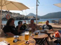 Natürlich besuchen wir auch Bekannte von Jambo und Gitti. Klaus, einer von ihnen, hat in Cala Ratjada eine Strandbar, die "Sa Cova". Hier kann man sich prima den Wanst mit Steaks vollschlagen. Und eine kühle Halbe gibt es natürlich auch.