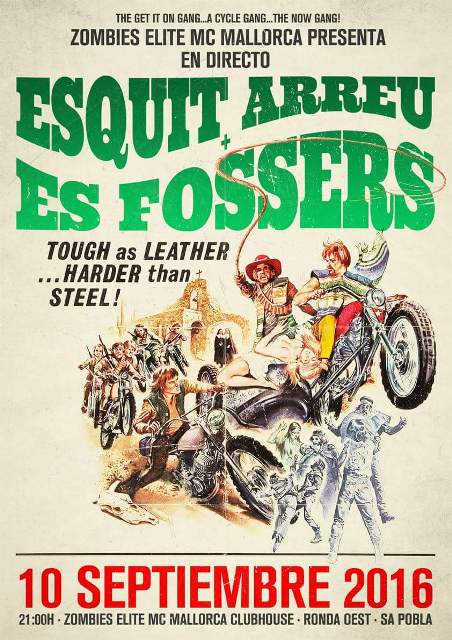 Great night of mallorcan rock from 2 of the best freack rock bands on the island. Es Fossers and Esquit Arreu. Great atmosfear in the Zombies Elite MC Mallorca clubhouse. Full house!